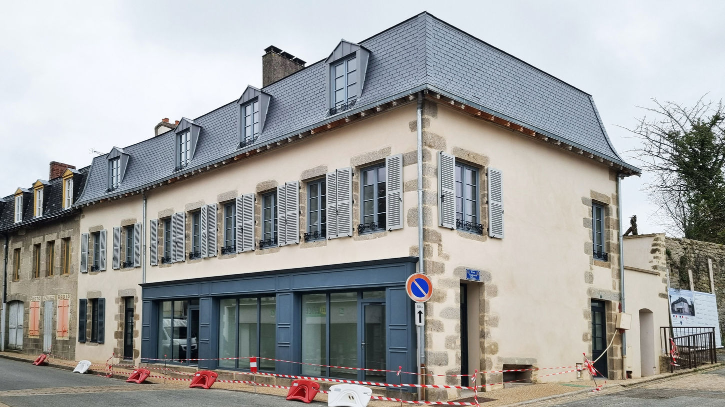 Le projet à pour objet la rénovation d’un immeuble situé à l’entrée de la commune de Bénévent-L’abbaye, au 17 rue du Marché, à proximité de la Mairie. Le programme prévoit la création deux commerces au rez-de-chaussée et de 3 logements T3 dans les étages supérieurs.